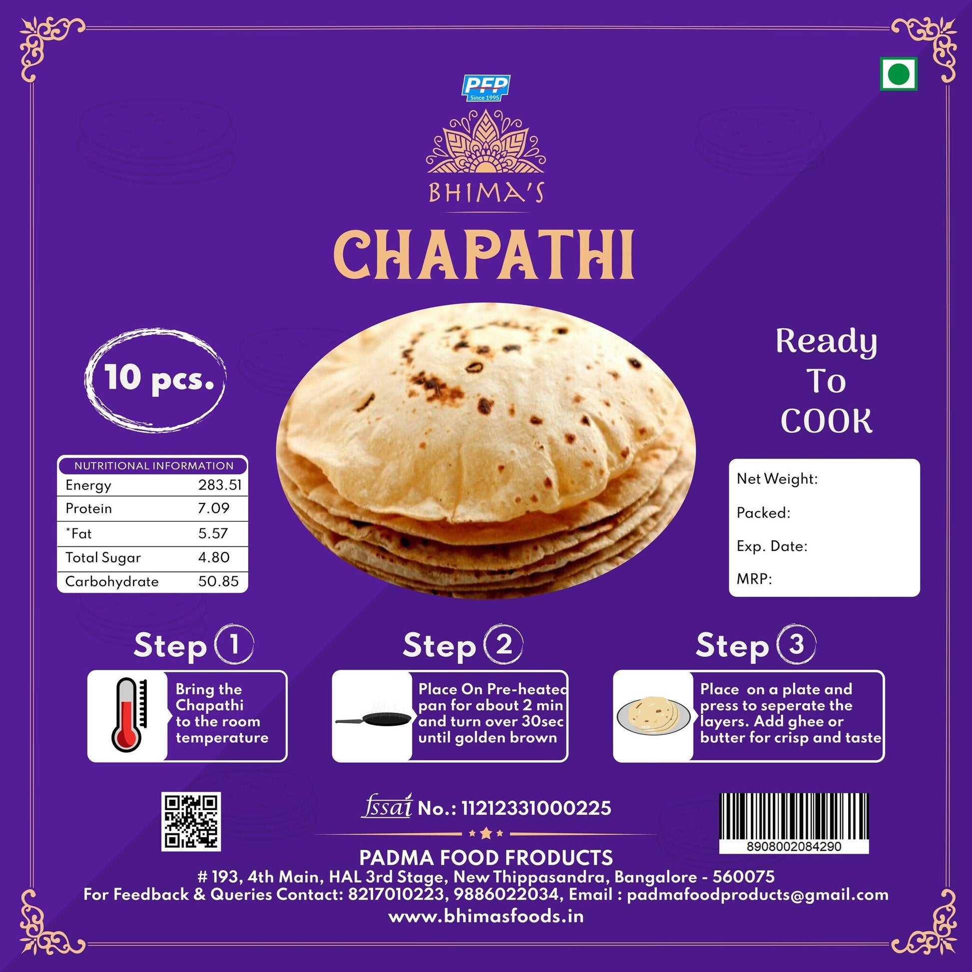 Made using high quality Whole wheat (Chakki Atta) to enhance taste and shelf life of the product, using unique methods of production and recipe for fluffy soft chapathi.